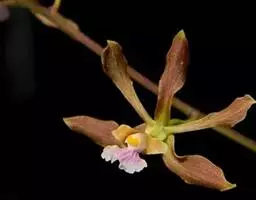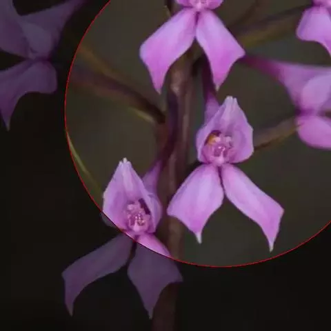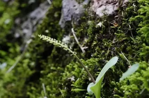 花瓣线状披针形或近线形,长约0.8毫米,宽约0.3毫米;唇瓣位于下方,近披针状三角形或舌状,长约0.7毫米,中部宽约0.6毫米,先端近渐尖,基部两侧有一对横向伸展的耳;耳线形或狭长圆形,长6-7毫米,宽2-3毫米,通常直立;蕊柱粗短,长约0.3毫米。花期4月。
