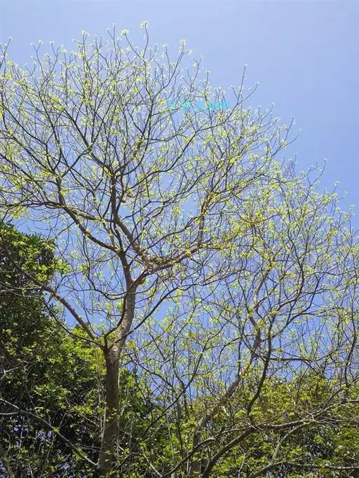 檫木(学名:Sassafras tzumu(Hemsl.) Hemsl)是樟科,檫木属落叶乔木,高可达35米,胸径达2.5米;树皮平滑,顶芽大,椭圆形,芽鳞近圆形,叶片互生,聚集于枝顶,先端渐尖,基部楔形,裂片先端略钝,坚纸质,上面绿色,下面灰绿色,叶柄纤细,花序顶生,先叶开放,多花,与序轴密被棕褐色柔毛,苞片线形至丝状,位于花序最下部者最长。花黄色,雌雄异株;花梗纤细,花被筒极短,花被裂片披针形,花丝扁平,被柔毛,果近球形,果托呈红色。3-4月开花,5-9月结果。