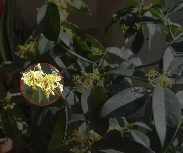 花序顶生,先叶开放,长4-5厘米,多花,具梗,梗长不及1厘米,与序轴密被棕褐色柔毛,基部承有迟落互生的总苞片;苞片线形至丝状,长1-8毫米,位于花序最下部者最长。花黄色,长约4毫米,雌雄异株;花梗纤细,长4.5-6毫米,密被棕褐色柔毛。雄花:花被筒极短,花被裂片6,披针形,近相等,长约3.5毫米,先端稍钝,外面疏被柔毛,内面近于无毛;能育雄蕊9,成三轮排列,近相等,长约3毫米,花丝扁平,被柔毛,第一、二轮雄蕊花丝无腺体,第三轮雄蕊花丝近基部有一对具短柄的腺体,花药均为卵圆状长圆形,4室,上方2室较小,药室均内向,退化雄蕊3,长1.5毫米,三角状钻形,具柄;退化雌蕊明显。雌花:退化雄蕊12,排成四轮,体态上类似雄花的能育雄蕊及退化雄蕊;子房卵珠形,长约1毫米,无毛,花柱长约1.2毫米,等粗,柱头盘状。果近球形,直径达8毫米,成熟时蓝黑色而带有白蜡粉,着生于浅杯状的果托上,果梗长1.5-2厘米,上端渐增粗,无毛,与果托呈红色。花期3-4月,果期5-9月。