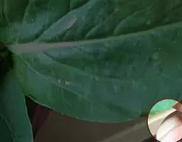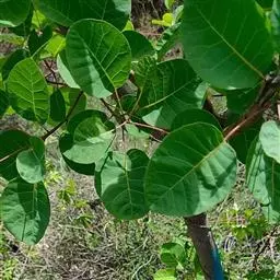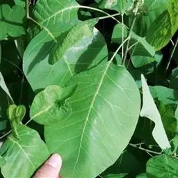 粉背黄栌叶卵圆形,较大,长3.5-10厘米,宽2.5-7.5厘米,无毛,但叶背显著被白粉;叶柄较长,…