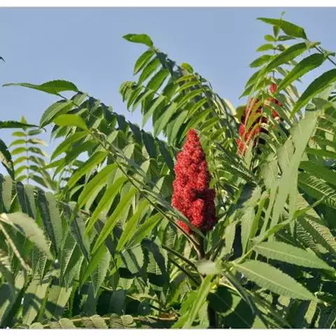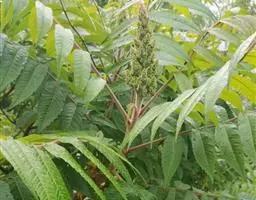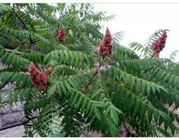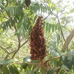 火炬树是漆树科盐麸木属落叶灌木或小乔木;株高,树形不整齐;小枝粗壮,红褐色,密生绒毛;叶轴无翅,…