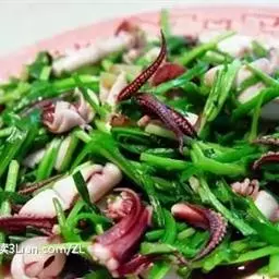 鱿鱼的切法:先从左角开始切,刀和鱿鱼呈45度的角,切那种连皮不要断刀的斜线就可以了;然后换反方向再…
