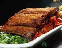 松鼠鱼是江苏省的一道传统名菜,属于苏菜系,该菜品以黄鱼为主要材料;松鼠鱼因形似松鼠而得名,通常以黄鱼、鲤鱼、鳜鱼等鱼类为原料,将鱼去鳞、鳃、内脏,用清水洗净。以胸腹鳍处下刀,将鱼头切下,然后再从下颌处下刀,将鱼头劈半刀,用刀略拍,剔下两面鱼肉,除净胸部细刺,鱼尾相连入油锅炸到金黄色,再浇上酱汁拼盘而成的美食;其色泽鲜艳,鲜嫩酥香,酸甜适口。