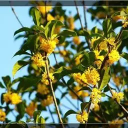 金桂,其为木犀科常绿灌木或小乔木,终年枝叶繁茂,花朵金黄,秀丽而不娇,花香馥郁,幽香而不露,在众多桂花中观赏价值最高。 桂花是我国十大传统名贵花卉之一,距今已经有2500多年的栽培历史,也是珠三角地区的常见树种。由于桂花可以赏花,又能闻香,现代都市园林造景时,经常会选用上它。桂花还具有丰富的文化意义。“物之美者,招摇之桂”,桂花一直是世上美好、高雅事物的象征。“八月桂花遍地开,桂花开放幸福来”,历代民间也皆视桂花为吉祥之兆。而举凡中榜登科,仕途得志也被称为“折桂”,对获得殊荣者则被誉为拥有“桂冠”。