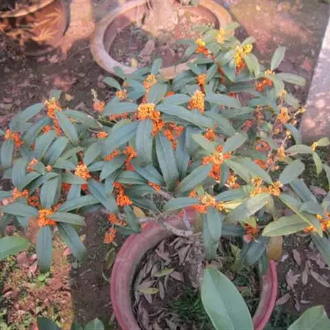 丹桂花朵颜色橙黄,气味浓郁,叶片厚,色深。一般秋季开花且花色很深,主要以橙黄、橙红和朱红色为主。丹桂分为满条红,堰红桂,状元红,朱砂桂,败育丹桂和硬叶丹桂。