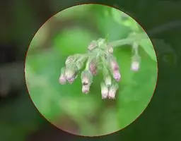 桂花炭疽病,该病侵染桂花叶片。发病初期,叶片上出现褪绿小斑点,逐渐扩大后形成圆形、半圆形或椭圆形病斑。病斑浅褐色至灰白色,边缘有红褐色环圈。在潮湿的条件下,病斑上出现淡桃红色的黏孢子盘。炭疽病发生在4至6月份。病原菌以分生孢子盘在病落叶中越冬,由风雨传播。