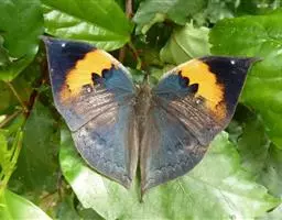 枯叶蛱蝶,又名木叶蝶、树叶蝶等,属于蛱蝶科。翅正面黑褐色,具深蓝色光泽,前翅顶角尖出,…