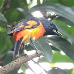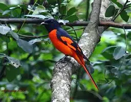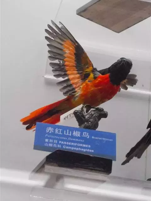 灰喉山椒鸟:共有8个亚种。体长18-22厘米。雄鸟头部和背亮黑色,腰、尾上覆羽和下体朱红色,…
