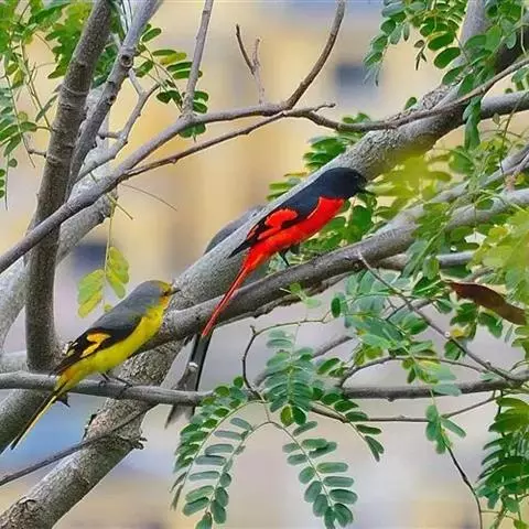 赤红山椒鸟为山椒鸟科山椒鸟属的鸟类,俗名红十字鸟、朱红山椒鸟。雄鸟红色,雌鸟黄色。…