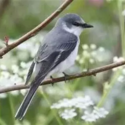 灰山椒鸟:体长18-20厘米。上体灰色或石板灰色,两翅和尾黑色,翅上具斜行白色翼斑,外侧尾羽先端白色。…