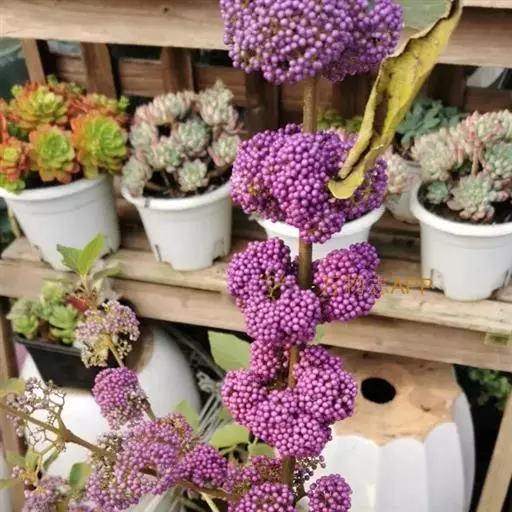 花语;紫珠的花语是“聪明”,拉丁学名的含义是“美丽的果实”,日本有紫珠一部古典名著叫《源氏物语》,把美丽幽雅的女性比喻为紫珠。紫珠的民间赠花礼仪:将长长的紫珠花枝插入白色的花瓶,花瓶的上部系上淡紫色的细缎带,连花瓶一起赠上。