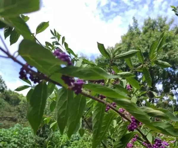 紫珠株形秀丽,花色绚丽,果实色彩鲜艳,珠圆玉润,犹如一颗颗紫色的珍珠,是一种既可观花又能赏果的优良花卉品种,常用于园林绿化或庭院栽种,也可盆栽观赏。其果穗还可剪下瓶插或作切花材料。
