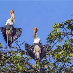 彩鹳:鹳科、鹮鹳属的鸟类。体长93-102厘米,体重2-3.5千克。橙黄色的嘴粗而长,…