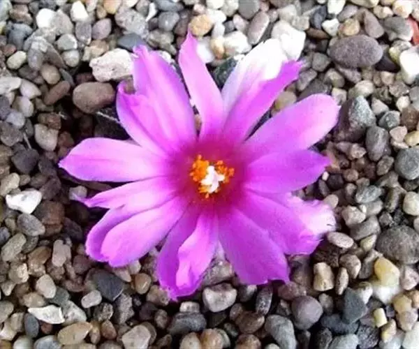 球状植株单生或丛生,呈垫状生长,单个球体直径10厘米至15厘米,顶部扁平,被有浓厚的白色或黄白色绒毛。表皮具厚实而坚硬的三角形疣突,疣突表面上灰绿色,至褐绿色,皱裂成不规则的沟,正中间一条纵沟一直伸到疣的腋部,并具短绵毛。花顶生,钟状,粉红色,长3.5厘米至4厘米,常数朵同时开放。