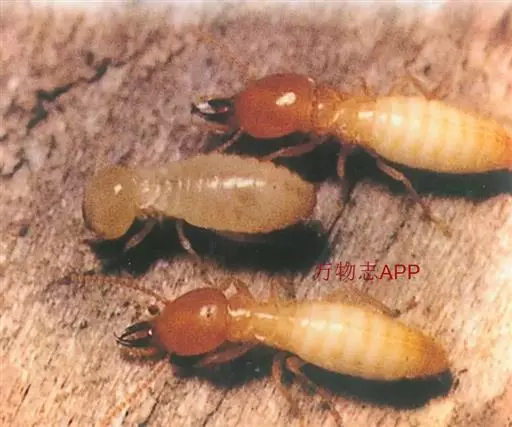 (5)其兵蚁最大的特点是额腺发达,头部前端有大形的囟,受掠扰时囟流出大量乳白色的酸性浆汁,能穿过石灰泥质,或用来抵御来犯之敌,故有乳白蚁之称;
