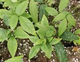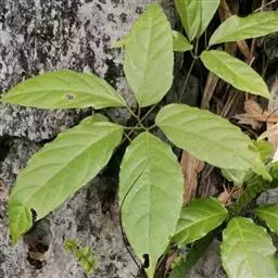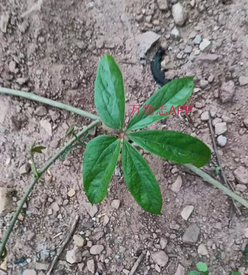 木质大藤本,茎扁压,深褐色。小枝圆柱形或微扁,有纵棱纹,无毛。卷须不分枝, 相隔2节间断与叶对生。叶为掌状5小叶,小叶长圆披针形、披针形、卵披针形,长(6) 9-16厘米,宽(2.5) 3-6 (7)厘米,顶端渐尖或急尖,基部楔形,边缘每侧有5-9个锯齿,锯齿不明显或细小,稀较粗,上面绿色,下面浅绿色,两面无毛;侧脉5-6对,网脉突出;叶柄长3-11厘米,无毛,小叶柄长0.5-3厘米,中央小叶柄比侧生小叶柄长2-4倍,无毛。
