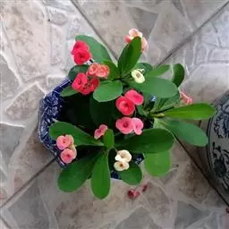 虎刺梅:别称铁海棠,是蔓生灌木植物。茎多分枝,长60-100厘米,直径5-10毫米,具纵棱,密生硬…
