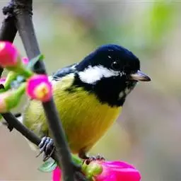 黄腹山雀是雀形目山雀科山雀属鸟类。虹膜褐色或暗褐色;嘴蓝黑色或灰蓝黑色;头、喉胸斑黑色,…