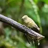 雌鸟额、眼先、头顶、枕和背灰绿色,后颈有一淡黄色斑。腰亦为灰绿色但稍淡,两翅覆羽和飞羽黑褐色,外翈羽缘绿色,中覆羽、大覆羽和三级飞羽具淡黄白色端斑。脸颊、耳羽以及颏和喉白色或灰白色,其余下体淡黄沾绿色。