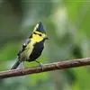 黄颊山雀是雀形目山雀科山雀属鸟类。雄鸟额、头顶和羽冠为具有光泽的黑色;额基、眼先、眉纹、脸颊和耳羽等头颈侧为鲜艳的明黄色;贯眼纹黑色;后颈亦具一黄斑;上体灰黄绿色,羽缘黑色;尾羽黑色具蓝灰色羽缘,基部白色;下体颏、喉至上胸为富有金属光泽的黑色;胸下有一黑色宽中央纵纹,一直延伸至肛周;其余下体白色;胸侧和两胁染黄色或蓝灰色;虹膜暗褐色;喙黑色;脚铅蓝灰色至铅黑色。雌鸟似雄鸟,但上体光泽较弱,胸腹部黑色纵带不明显。黄颊山雀分布于亚洲东南部地区,在中国分布于华中、华南和西南等地。栖息于中低山常绿阔叶林、针叶林和混交林中,也见于山麓疏林灌丛草坡或茶园、果园等地。常成对或小群活动,也和大山雀等其他小型鸟类混群,活跃地在乔灌木枝叶间飞翔跳跃。主食鳞翅目和鞘翅目等昆虫,兼食植物种实。繁殖期在4-6月,营巢于树洞、岩隙或墙缝中。窝卵数为3-7枚,卵灰白色且有红褐斑,雏鸟晚成。黄颊山雀被列入中国林业局200