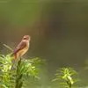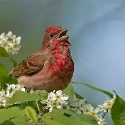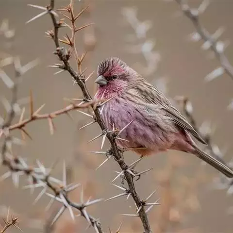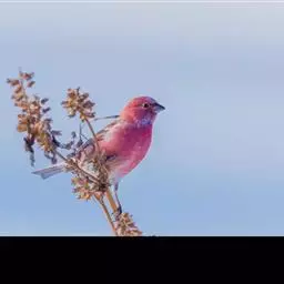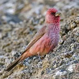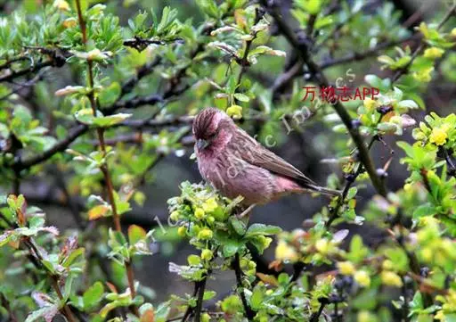 藏朱雀:全长约17-18厘米。雄鸟头部深红色具光辉,喉部暗红色具白色点斑;背部灰白色,各羽具玫瑰红…