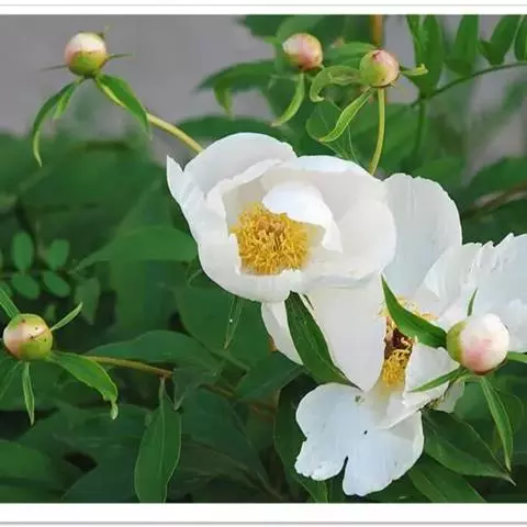 白花赤芍在萌芽阶段有一种淡淡的粉色,其后台才开出纯白色的花朵。