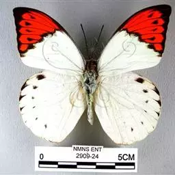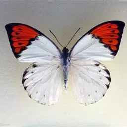 鹤顶粉蝶是鳞翅目粉蝶科鹤顶粉蝶属昆虫,又称端红蝶。雄蝶翅白色,前翅前缘及外缘黑色,…