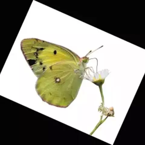 纹黄蝶,翅面黄色,缘毛桃红色;前翅外缘宽的黑边中有几个黄色斑,中室端部有一个黑斑;后翅外缘的黑色斑…