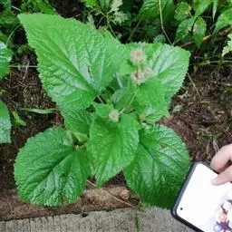 多年生草本,高15-45cm。茎直立,四棱形,疏被倒向短硬毛。茎生叶对生;叶柄长1.5-10cm;叶片卵圆形、卵形或卵状长圆形,长5-17.5cm,宽4.2-11cm,先端急尖或钝,基部心形或浅心形,边缘具深圆齿,上面被短纤毛,下面沿脉上被具节疏柔毛。苞叶卵形至卵状披针形,超过花序;叶柄长不及1cm。轮伞花序多花,1-2个生于主茎顶部;苞片线状钻形,较萼为短,边缘密被具节缘毛;花萼管状钟形,长1.8-2.8cm,外面被具节疏柔毛,具5齿,萼齿先端微凹,具小刺尖,齿间小齿先端微凹,边缘被微柔毛;花冠淡黄色,长3.7-5cm,唇形,外面疏被短柔毛,内面无毛环,上唇边缘具小齿,下唇较大,外面被短柔毛,3圆齿,中裂片较大,圆卵形,边缘为不整齐的波状,侧裂片三角形;雄蕊4,二强,前对较长,花丝具长毛,无附属物;雌蕊子房2,合生,花柱单一,柱头2裂。小坚果无毛。花期6-7月,果期8-11月。