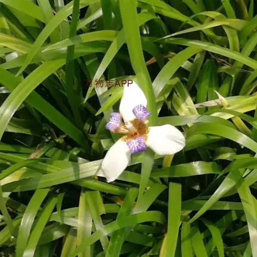 双色野鸢尾为多年生草本植物,叶子呈剑状淡绿色。…