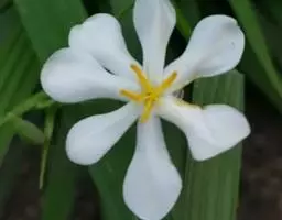 巴西鸢尾株高约40~50公分,叶从基部根茎处抽出,呈扇形排列。叶宽约2公分,革质,深绿色;花期约春至夏季。 巴西鸢尾的繁殖方式很奇特,像吊兰一样,在开花后会从花鞘内长出小苗。