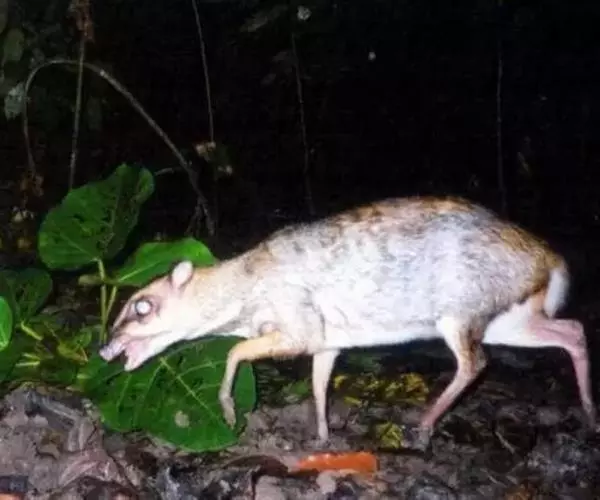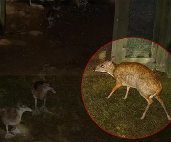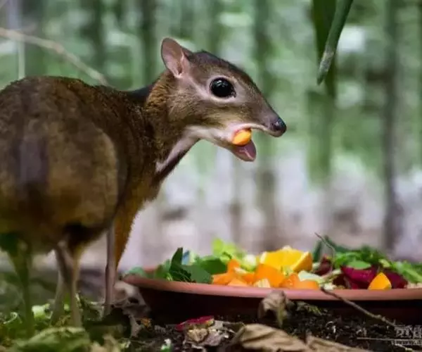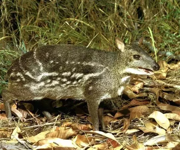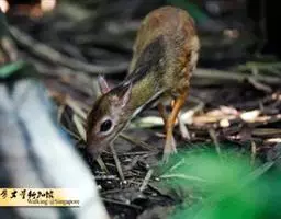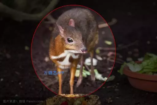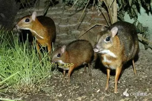 鼷鹿是介于骆驼科与鹿科之间一个珍稀物种,是地球上最小的偶蹄动物,其外形就如马鹿的袖珍版,体形只有兔子般大小,由于其保持了鹿科动物的很多原始特性,因而有着极高的科研价值。