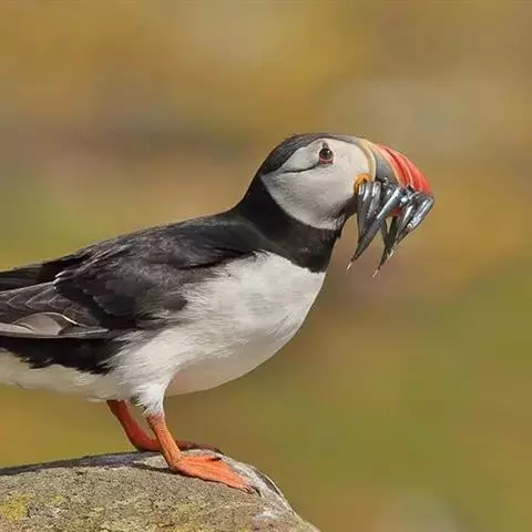 角嘴海雀,是海雀科、角嘴海雀属的中型海鸟,体长32-41厘米,嘴短而粗呈圆锥状、橙色。夏羽上嘴基部…