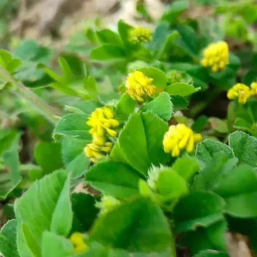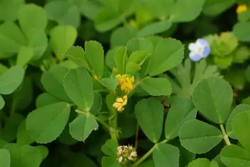 天蓝苜蓿(学名:Medicago lupulina L.)是豆科,苜蓿属多年生草本植物。高可达60厘米,全株被柔毛或有腺毛。主根浅,须根发达。茎平卧或上升,多分枝,叶茂盛。羽状三出复叶;托叶卵状披针形;小叶倒卵形、阔倒卵形或倒心形。花序小头状,总花梗细,挺直,比叶长,密被贴伏柔毛;苞片刺毛状,甚小;花冠黄色,旗瓣近圆形。荚果肾形,表面具同心弧形脉纹,被稀疏毛,熟时变黑;有种子1粒。种子卵形,褐色,平滑。7-9月开花,8-10月结果。