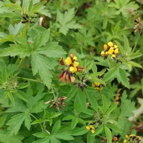 叶茂盛,羽状三出复叶;托叶卵状披针形,长可达1厘米,先端渐尖,基部圆或戟状,常齿裂;下部叶柄较长,长1-2厘米,上部叶柄比小叶短;小叶倒卵形、阔倒卵形或倒心形,长5-20毫米,宽4-16毫米,纸质,先端多少截平或微凹,具细尖,基部楔形,边缘在上半部具不明显尖齿,两面均被毛,侧脉近10对,平行达叶边,几不分叉,上下均平坦;顶生小叶较大,小叶柄长2-6毫米,侧生小叶柄甚短。