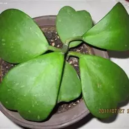 心叶球兰是萝摩科、球兰属亚灌木。茎枝攀爬达可2米,黄灰色。叶柄粗壮、饱满,叶片呈卵至长卵形,…