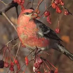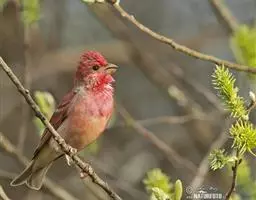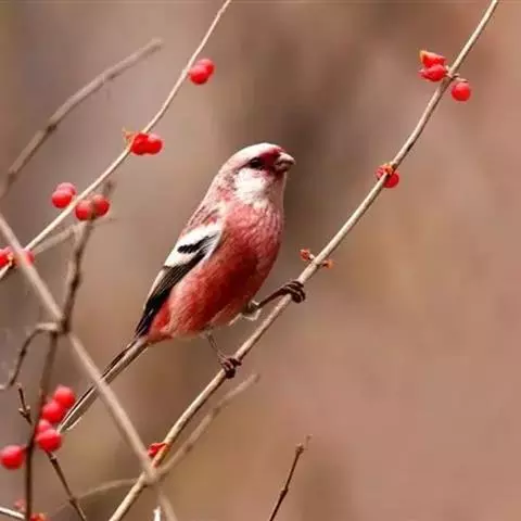 酒红朱雀小型鸟类,体长13~15厘米。雄鸟通体深红色,头部深朱红或棕红色,下背和腰玫瑰红色,…