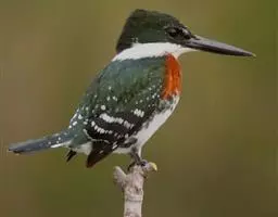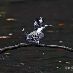绿鱼狗是佛法僧目翠鸟科的鸟类。成年雄鸟,额头和眼先是黑色,头顶端深绿色呈古铜光泽。翅膀羽毛有白色斑…