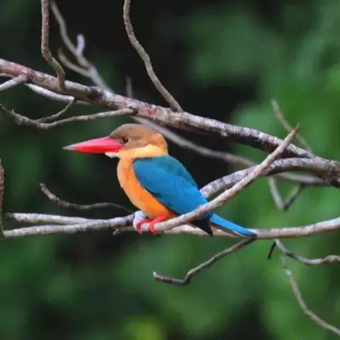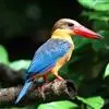 鹳嘴翡翠:体长33-37厘米。体重140-200克。共有13个亚种,体型大,嘴形巨大、侧扁,似鹳嘴…