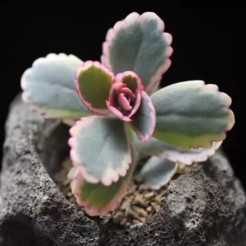 大叶落地生根育苗用土常用腐叶土、粗砂混合。大叶落地生根的人工繁殖可用扦插或栽培不定芽繁殖,叶插、茎插均可,但使用最方便的是不定芽繁殖。大叶落地生根的叶片与其它双子叶植物相比较有着特殊的功能,表现在每个叶缘凹陷处的复表皮里面都有一个不定芽。将大叶落地生根的母株置于空气湿度较大的温室内,可促进不定芽生长,1枚叶能长出30-50个不定芽。不定芽刚长出1根不定根时即从叶片上取下该成熟的不定芽,均匀播在育苗盘内,营养土一定要使用消毒后的干浄土壤,并疏松透气;将育苗盘放在阳光充足的温室内,切忌弱光,否则幼苗细弱而徒长。当幼苗长到4-6片叶时,分苗至50孔的穴盘中,封行后移栽到直径15厘米或18厘米盆中。益阳多在春末进行繁殖也可在秋季繁殖。幼苗繁殖尽量避开盛夏和严冬。