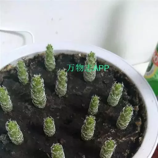 松霞是仙人掌科乳突球属的多年生肉质植物。单个球体小,呈圆筒状,暗绿色,疣状突起小,呈圆形,刺座无毛,…