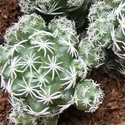 银手球,仙人掌科乳突球属,植株群生,小短圆筒形。原产墨西哥伊达尔戈州。