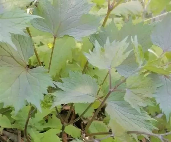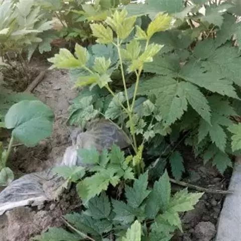升麻根状茎粗壮,坚实,表面黑色,有许多内陷的圆洞状老茎残迹。茎高1-2米,基部粗达1.4厘米,微具槽,分枝,被短柔毛。叶为二至三回三出状羽状复叶;茎下部叶的叶片三角形,宽达30厘米;顶生小叶具长柄,菱形,长7-10厘米,宽4-7厘米,常浅裂,边缘有锯齿,侧生小叶具短柄或无柄,斜卵形,比顶生小叶略小,表面无毛,背面沿脉疏被白色柔毛;叶柄长达15厘米。7-9月开花,8-10月结果。生海拔1700-2300米间的山地林缘、林中或路旁草丛中。升麻喜温暖湿润气候。耐寒,当年幼苗在-25℃低温下能安全越冬。幼苗期怕强光直射,开花结果期需要充足光照,怕涝,忌土壤干旱,喜微酸性或中性的腐殖质土,在碱性或重粘土中栽培生长不良。