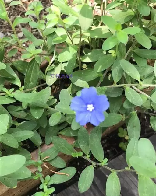 多年生匍匐草本。根褐色,稍含紫色物质。匍匐茎长可达30厘米,有开展的糙伏毛;茎直立,高5-25厘米。基生叶有短柄,叶片倒披针形或匙形,长3-6厘米,宽8-18毫米,两面都有短糙伏毛但下面毛较密;茎生叶与基生叶同形而较小,先端急尖或钝,基部渐狭,近无柄。花序长2-5厘米,有花1至数朵,苞片叶状;花有短花梗;花萼长约6.5毫米,裂片线状披针形,两面都有毛;花冠蓝色或蓝紫色,长1.5-1.8厘米,外面稍有毛,筒部与檐部无明显界限,檐部直径约1厘米,裂片宽倒卵形,近等大,长5-6毫米,全缘,无脉,喉部有5条向筒部延伸的纵褶,纵褶长约4毫米,稍肥厚并有乳头;雄蕊着生纵褶之下,花药长1.5-2毫米;花柱长约4毫米,柱头头状。小坚果斜卵球形,长3-3.5毫米,乳白色而稍带淡黄褐色,平滑,有光泽,腹面中线凹陷呈纵沟。花果期5-8月。