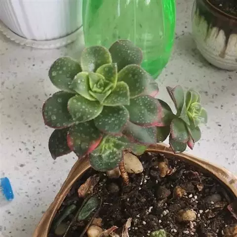 红缘莲花掌属蔷薇目、景天科植物,原产大西洋的加那利群岛。质厚,蓝绿色,被白霜,叶缘红褐色。聚伞花序,…