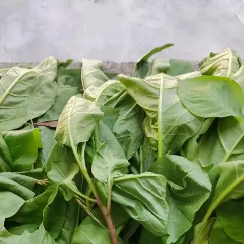 基生叶矩圆形,长20-30厘米,宽10-15厘米,具长叶柄,上面皱缩不平,略有光泽,下面有粗壮凸出的叶脉,全缘或略呈波状,先端钝,基部楔形、截形或略呈心形;叶柄粗壮,下面凸,上面平或具槽;茎生叶互生,较小,卵形或披针状矩圆形,先端渐尖,基部渐狭入短柄。