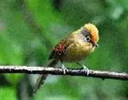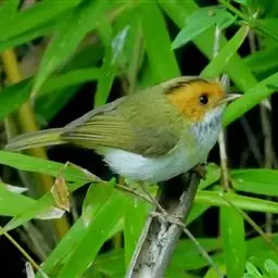 棕脸鹟莺:体长10厘米,是一种色彩亮丽而有特色的莺鸟。头栗色,具黑色侧冠纹。上体绿,腰黄色。下体白,…