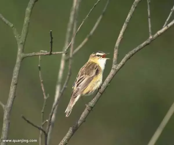 水蒲苇莺(学名:Acrocephalus schoenobaenus):小型鸟类,体长12-14厘米。雌雄两性羽色相似。上体褐色,头顶和背具粗著的黑褐色轴纹;腰和尾上覆羽较淡棕色,无轴纹;头顶黑褐色轴纹常沿纵轴排列成行;眉纹皮黄色或灰白色,宽阔而明显;贯眼纹黑褐色;耳下覆羽较四周羽毛色暗;两翅和尾褐色而沾灰,外翈羽缘红褐色;下体白色,或淡土黄色;两胁较暗;腋羽白色,有时稍沾土黄色;翅下覆羽淡银灰色,羽缘土白色。