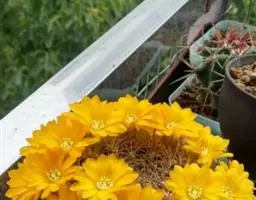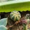 江守玉为仙人掌科强刺球属,植株扁圆形至球形,后成圆柱状,体色灰绿,刺座上附生白色绒毛,花橙黄色,漏…