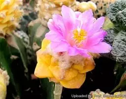 岩牡丹是仙人掌科、岩牡丹属多年生草本多浆植物。植株球形或呈扁平的莲座状,灰绿色,球体表面被白粉。…
